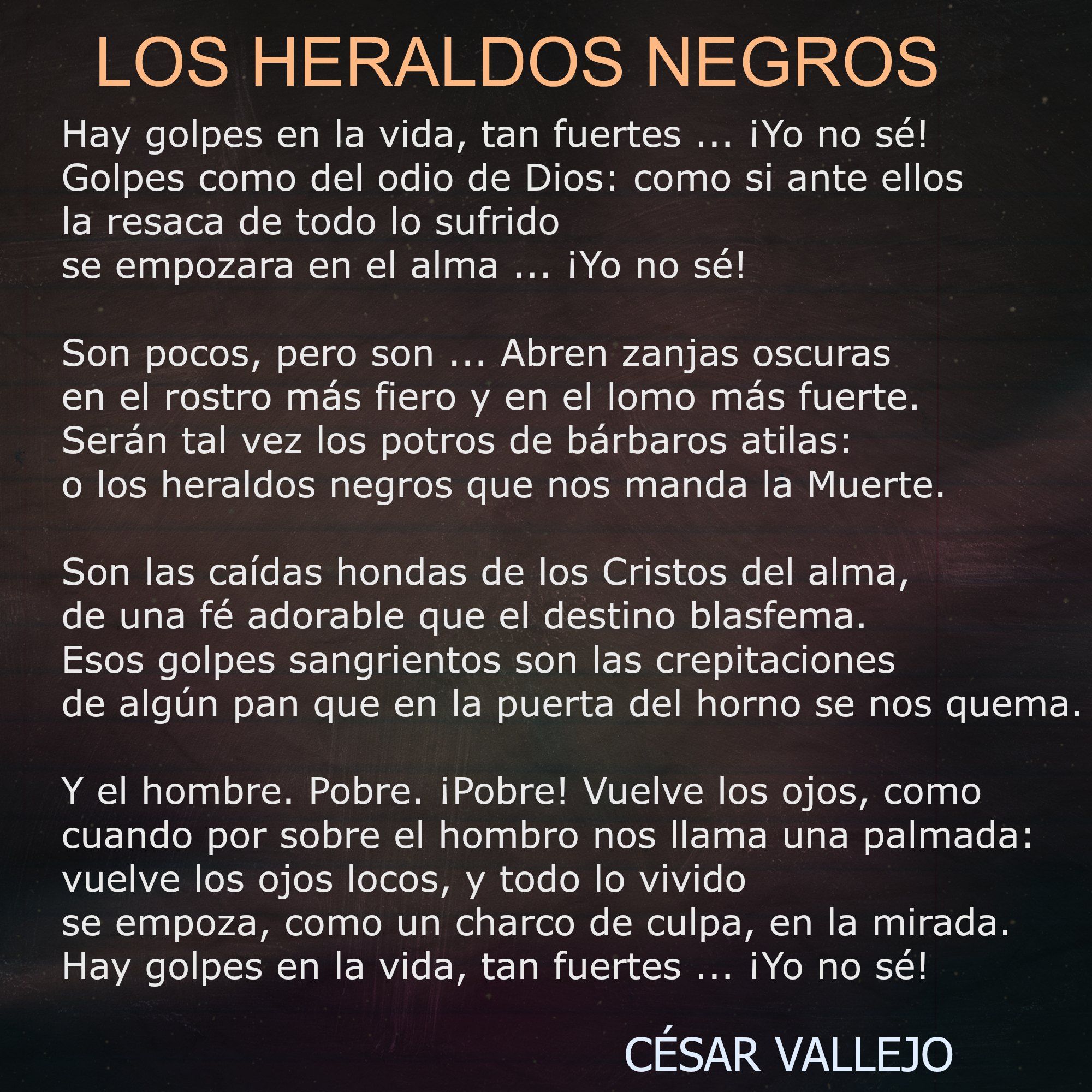 | Resumen: | El poema "Los heraldos negros" es una de las grandes obras maestras de la lengua hispanoamericana. Fue escrito por César Vallejo a los 25 años y publicado en su primer libro, también titulado Los heraldos negros, en 1919. ... El poema trata de la condición humana: el ser humano en tanto que da cuenta de su dolor. |